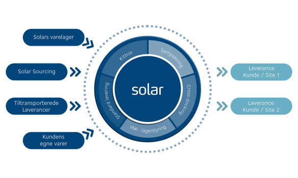 Som bagtæppe til vores produkter tilbyder Solar tilbyder en række Value Added Services, crossdocking, Co-packing, support til forecast, operationel indkøb overfor jeres leverandører og mange andre services.