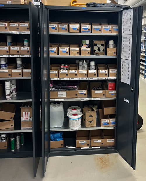 ”Vi lægger vægt på, at alle produkter kan samles ét sted i stedet for, at der står forskellige typer af kemi rundt omkring i virksomheden. På den måde har vi styr på det, hvis Arbejdstilsynet kommer – men også for medarbejdernes sikkerhed,” forklarer Ulrik Kær Knop, der er lagerchef hos Kjærgaard A/S.